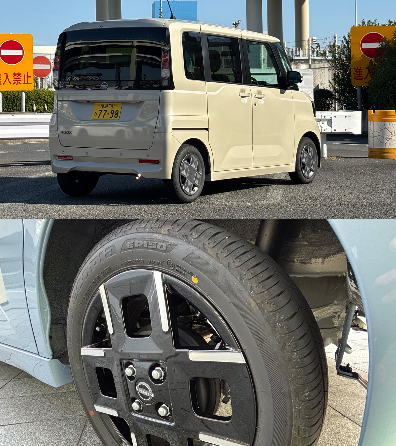 (上)ボディカラーは、ハイウェイスターシリーズに6通りの2トーンと7色のモノトーン、スタンダードシリーズに7色のモノトーンで全17通り。(下)海沿いの大黒PA周辺はカーブが続くのだが、ロールスピードを抑えたサスペンションはゆっくりとロールするため、乗員に安心感を与えてくれた。
