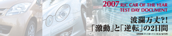 i、カローラ、SX4、MPVの四つ巴の展開で序盤スタート。中盤に本命のiが抜け出し、これに伏兵(?)カローラと◎印SX4が肉迫。さらに後半になってカローラがiをとらえて僅差のリード、そのままゴールに飛び込むかに見えたのだが…。しかし、最終盤にとんでもないドラマが待っていた。残り2票となったところでiがカローラを逆転、その差僅か11点で2007 RJC カーオブザイヤーの栄冠はiの頭上に輝いた!!