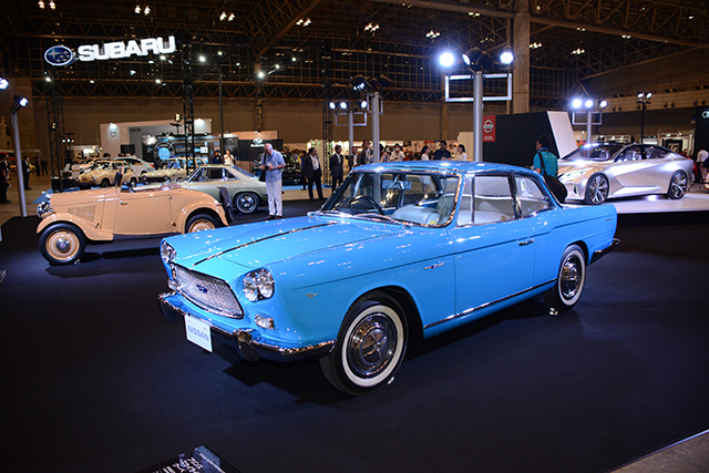 スバルはアイストップを中心に安全技術のプレゼンテーション。テントウ虫(スバル360)やスバル1000と新しいレヴォーグやWRX S4も並べられた。