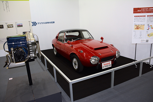 トヨタはハイブリッドに関する解説。クルマとして興味をひかれたのはガスタービン・ハイブリッドのS800だ。モーターショー用に作られたモデルらしいが仕上がりは素晴らしかった。