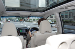 実際に車体が動き出しても、このすっきりした印象は変わらない。普通の走行状態では、はるかに離れているはずの運転席助手席とも気持ちよく会話ができる。しかも後ろのサスペンションの直上に座席があるにもかかわらず、座面の動きはあくまでなめらか。最後列に“座らされている”ひけめを感じない。“ちょっと駅まで”どころか、高速道路を使って温泉旅行、まで文句はない。