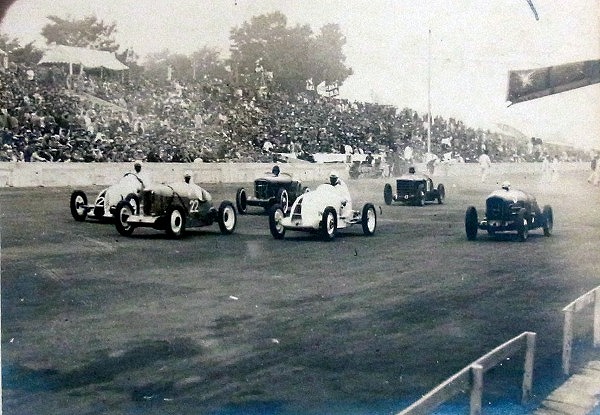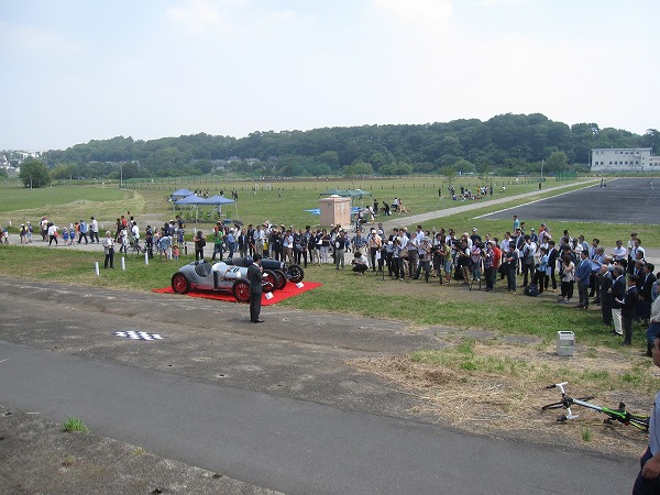 第3回大会の模様で22号車が小型車クラスで優勝したオオタ号。この時の観客席が今もそのまま残っている。