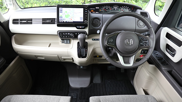 インテリアでは、両モデルともに高級感と使い勝手がさらに向上。かゆいところに手が届く収納に加え、インパネやスイッチ類の仕上げなどはコンパクトカーをしのぐほど。ステアリングホイール上部から視認できるアウトホイールメーターは、視認性とN-BOXならではの開放感を両立。570㎜もの助手席スライド量を実現したスーパースライドシート仕様もフレキシブルに活用でき、子育て世代では特に活躍するだろう。