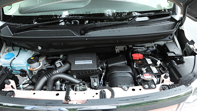エンジンは新骨格のロングストロークタイプで、NA仕様にはホンダ自慢のi-VTECを、ターボ仕様には電動ウェイストゲートバルブを軽自動車として初採用。ともに十分な動力性能とアクセルワークに対してのリニアな加速感が好印象だった。これは、自社開発のCVTとの協調制御も大きく貢献していると思われる。