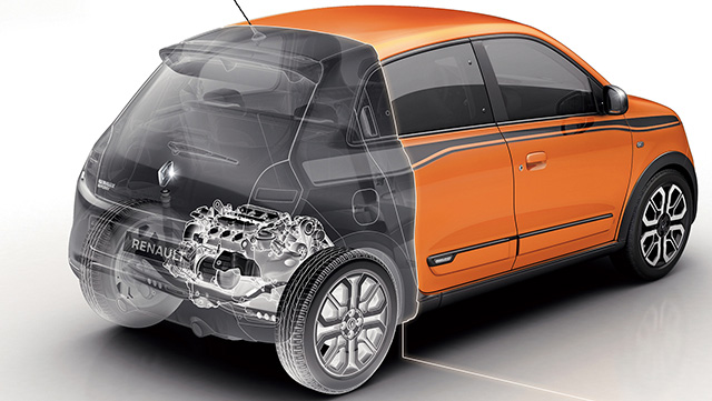 3代目のトゥインゴはリヤエンジンリヤドライブ、いわゆるRRの形式。最近は少数派のドライブ形式だが、かつてルノー4CVを日野自動車がノックダウン生産していたので、ルノーのRR車は日本でもかなり走っていた。私もかなり乗ったが、軽快によく走るクルマだったのを覚えている。