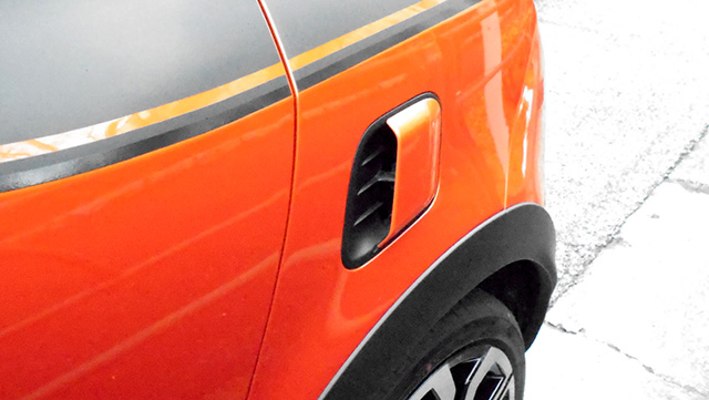 そのチューニングをルノーの発表から見ていくと、まず左フェンダーに設けられたサイドエアインテークが挙げられる。トゥインゴの他のモデルはホイールアーチ上部にエアインテークがあるが、GTでは左フェンダーの高い位置に変更した。これにより、空気の温度が12%低下し、吸気流量が23%向上したという。ホントにそんなに向上するのか、少し?マークが付くが……。というのはエンジンの出力というのはシリンダーに取り込む空気(酸素)の量に比例するので、これだけで110PSが出てしまう計算になるからだ。