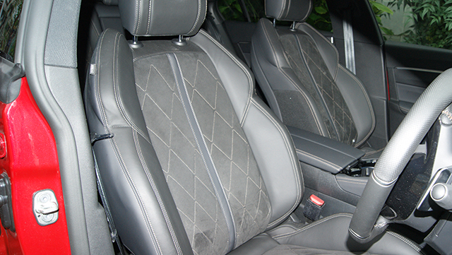 室内は308と同じく小計のステアリングに、i-Cockpitと呼ばれるステアリングの上からメーター類が見える様になっている。ドライバーシートに座ると腰部をしっかりホールドしてくれる感じで、シートに座っただけでスポーティな走りをイメージさせてくれる。