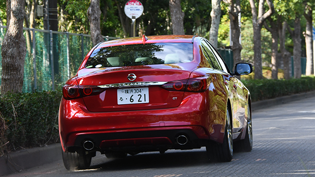 ちなみに、スカイラインのパワートレーンは3種類あるが、今回試乗したのはV型6気筒3.5ℓ(225kW=306ps)とモーター(50kW=68ps)を積むハイブリッドGTである。