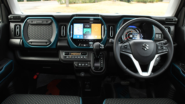 ターボの4WDでは高速道路走行で、スズキ軽初搭載のACC(アダプティブクルーズコントロール)と車線逸脱抑制機能を試したが、全車速追従機能付きで、車線のはみだしも抑制してくれるので、軽でも長距離移動がラク。高速道路でのカーブでの走行安定性や乗り心地も満足、ステアリングにあるパワーモードを試すと力強い加速が得られ、なんだか小型車のような感覚を覚えた。