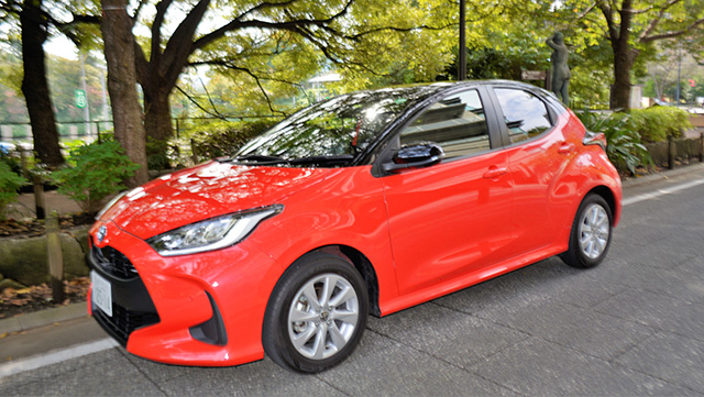 ピックアップしたのは「ヤリス」「GRヤリス」「ヤリスクロス」の3タイプあるのうち、最量販モデルの「ヤリス」のハイブリッドGである。なんでもヤリスは2020年の4月、5月、7月、9月とランキング1位で、4-9月の上半期で販売台数(普通乗用車)でも1位だという。
