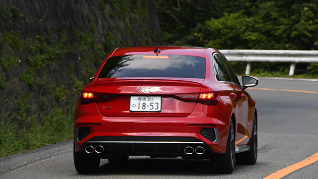 1台目の試乗車は真っ赤なS3セダンだった。エンジンは2.0リッター直列4気筒ターボ。、最大トルクは400Nm。車重は1560kgだが、オプションのサンルーフがついていたから1600kgぐらいか。1300kg台のFFのスポーツバックに比べるとかなり重い。さらにS3の駆動方式がクワトロであることが影響しているのも間違いない。