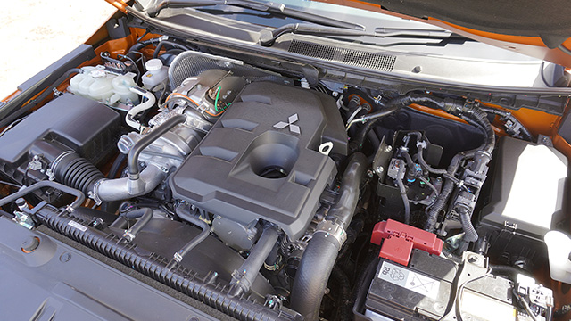 エンジンは、新型トライトンとしてはフラッグシップとなる、2.4Lツインターボディーゼルエンジンを採用。パワースペックとしては150kW/470Nmとなり、その極太トルクに感激しつつも、その数値以上に好印象だったのは、なだらかに、そして、滑らかに加速していくフィーリングのほう。極低回転域から不足ないトルクを発生させつつ、どの回転域からもさっと加速し、特に高速道路では、そのままに高回転へと導いてくれる。イマドキのSUVのように8速あったほうがいいのにな、と思わせることもなく、気持ち良さを堪能できる。