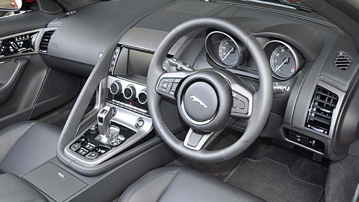 さて、今回の“F”タイプ。これは、1961年から75年まで販売されたピュア・スポーツカー・Eタイプの後継車であることをアピールする。スポーツならXKでいいじゃないかという声もあるかもしれないが、それは違う。XKはあくまでも2+2シーターのラグジュアリースポーツでありFタイプは2シーターの本格的スポーツだ、というのがジャガーの説明。となれば、このスポーツはさぞかし乗り心地や操作もハードだろう……。