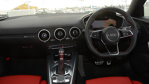 エンジンはTTが230馬力、TTSが286馬力。加速はともにいい。たとえば0→100㎞/h。TTが5.3秒、TTSが4.7秒。これは相当いい数値だ。とくに、4本のエキゾーストパイプを出すTTSはサウンドの演出が巧み。低く唸るような排気音がスポーツ心をくすぐる。ついでに付け加えておくと、クーペは4人乗り、ロードスターは2人乗りだ。トランスミッションは全車6速Sトロニック。ベースはMTだが、2ペダルだからAT限定免許でOKだ。