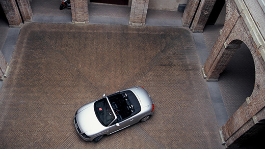 所はイタリア・グッビオ、前年(1998年)のクーペの試乗会に続いて、ロードスターのそれにもアウディはこの地を選んだ。サッカーでも知られるペルージャから聖フランチェスカで知られるアッシジの街を風のように駆け抜けた。グッビオは4000年の歴史を持つ古都だ。石の街とも呼ばれる。古い街並みは極めて味わい深いが、それだけに道は狭い。撮影場所を探している妙な東洋人を見て、先ほどから見え隠れしていた冒頭の男が近づいて来た。ぼくはちょっと身構えた。