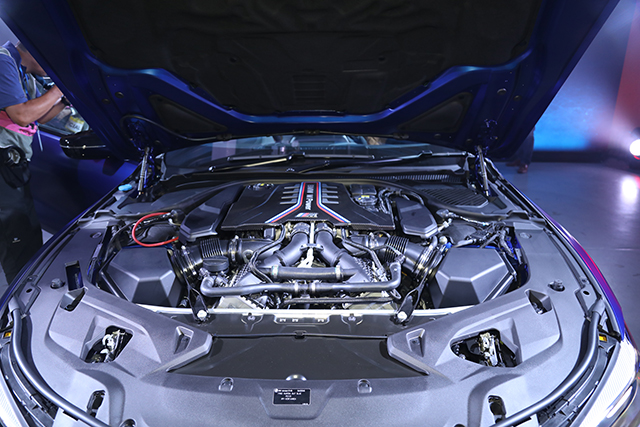 フラッグシップ・モデルとなるBMW M8は、V型8気筒Mツインパワー・ターボ・ガソリン・エンジンは、4.4リッターで最高出力460kW(625ps)/6000rpmを発揮(M8 コンペティションモデル)。BMW量産モデルでは、最もパワフルなエンジンだ。2基のツインスクロール・ターボ・チャージャー、高精度ダイレクト・インジェクション・システム、バルブトロニックを組み合わせて750Nm/1800-5800rpmもの強大なトルク発生、0-100km/h加速は3.2秒をマークするという。