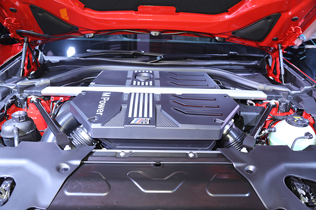 X3M、X4Mともに、新開発の3リーター直列6気筒Mツインパワーターボエンジンを搭載し、最高出力375kW(510ps)/6250rpm(コンペティションモデル)、最大トルク600Nm/2600-5950rpmを発揮する。ちなみに0-100km/h加速は4.1秒を達成。
