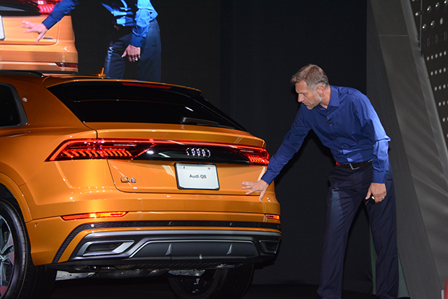「このプロジェクトは6年前に始まりました。エクステリアデザインで一番悩んだのはルーフです。Q7のルーフラインを滑らかにしようという案もありました。でもそれじゃあBMW X6などと同じになってしまう。」