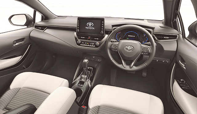 ガバッと大きく口を開いたフロントバンパーを始めとして、エクステリアデザインはカローラとしてはかなりスポーティだ。では内装はどうか。これはかなり穏やかである。