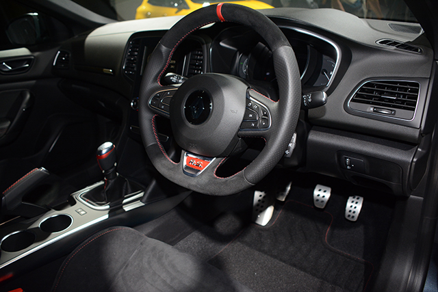 室内に目をやれば、レカロとルノーが共同開発したフロント・バケットシートが目に付く。ステアリングホイールにはナパレザーとアルカンタラが使われている。MT車のサイドブレーキは手動だ。