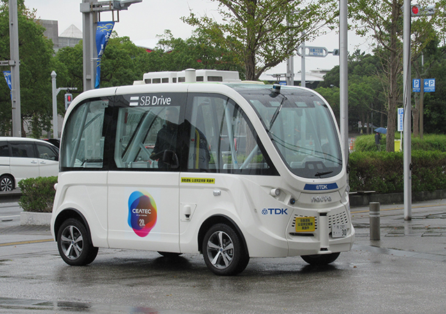 自動運転バス。市街地コースを15分ほどかけて走る。乗れなかったのが残念。