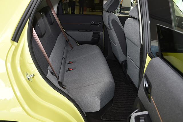 発売は10月30日からだ。公表された資料によるとボディの3サイズは3875×1750×1510mm。全長と全高は見た目の印象とあまり変わらないが、1750mmの全幅は思ったより大きかった。室内は広いとは言いがたいが、さりとて軽自動車のようなことは当然ながらない。乗車定員は4名、リアシートの乗員は多少足を曲げなければならないかもしれない。