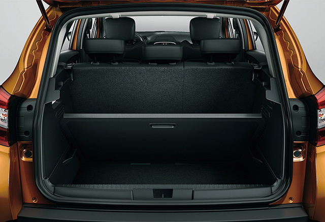 シートバックの形状を改良して後席の乗員の膝回りのスペースはクラストップレベルの 221 ?となり、先代モデルに比べて17?ゆとりが生まれた。リアシートは6:4 分割可倒式、前後に最大 160 ?スライドし、後席のスペースとラゲッジ容量を最適化できる。リアラゲッジ容量は、欧州 BセグメントSUVクラス最大レベルの 536リットルとなり、リアシートを倒した状態では1235リットルに拡大する。