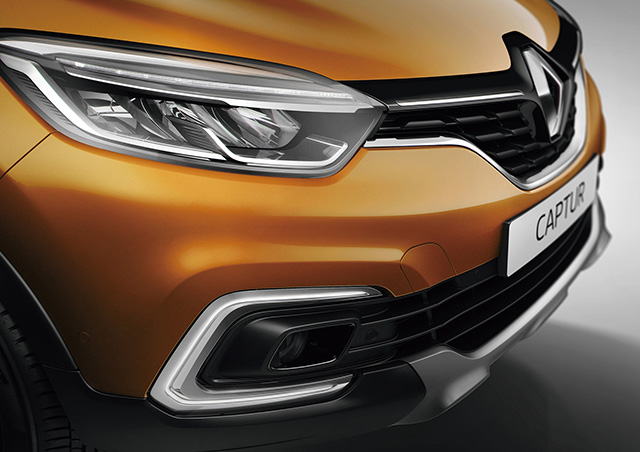 新キャプチャーの顔は、ルノーを象徴するCシェイプデイタイムランプ。リアにも同じコンセプトのランプが装備される。完全LEDだ。ヘッドライトユニットには、フロントグリルからライトユニット内に続くクロームモールと一体となった「目」を思わせるふたつの造形、「まつ毛」を思わせる立体的なストライプが組み込まれる。