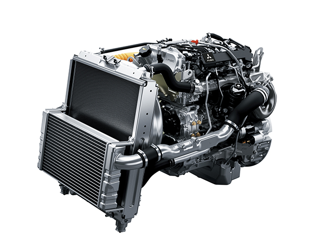 エンジンは直列4気筒3.0Lのインタークーラーターボ付きディーゼルエンジンで、仕様により81kW(110PS)から129kW(175PS)まで4段階の出力のエンジンがある。排ガスに関してはPMに対してはDPF、NOxに対しては尿素SCRを採用している。今回のチェンジでエンジンは主にソフトウエアを改良することで燃費の向上を図っている。また、エンジンだけでなく、駆動系や空力など細かなところのチューニングを進め、従来比で7%の燃費低減を実現している。ちなみにアイドリングストップ付き2トン積み車で、11.6km/ℓを達成しクラストップの低燃費としている。