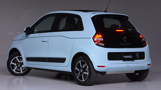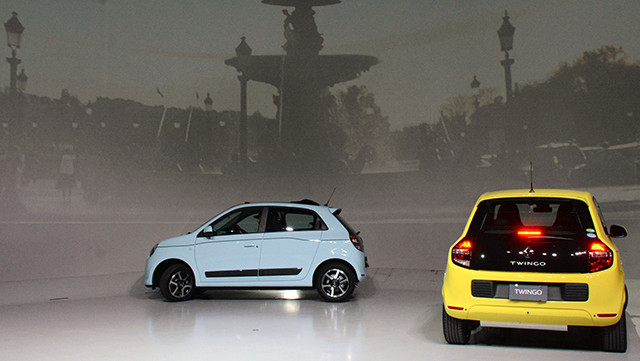 この発表会でも狭いステージ上を2台のトゥインゴが何度も周回していたが、これはおそらく小回り性の良さをアピールするためでもあると思う。最小回転半径は4.3m。これにはRR化によってステアリングスペースがふえ、前輪の切れ角が30度から45度になったことも大きい。全幅は従来モデル程度だが、全長は100㎜短くなっている。その半面、室内長は延び、後席のニ―ルームはクラス最高の136mmもある。これには従来モデルより125mm長くなったホイールベースも貢献している。