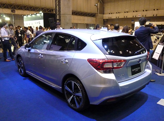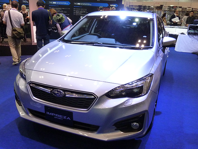 スバルブースではボクサーエンジン50周年ということで、まさに50年前の1966年に発売されたスバル1000を展示。その横には今秋発売となる新型インプレッサの5ドア、すなわちインプレッサスポーツが並んでいた。次世代スバルの骨格となるスバルグローバルプラットフォームを採用し、衝突吸収量は現行モデルに対し140%も向上。また自動ブレーキのアイサイトに加え、日本車初となる歩行者用エアバッグも全車種標準装備される。