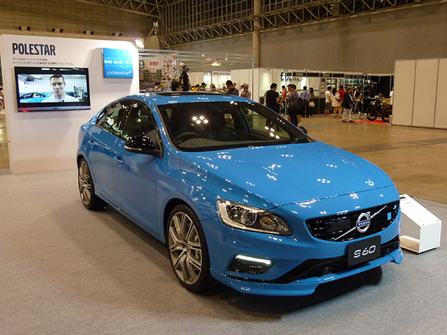 輸入車ブースではボルボが、オートモビル カウンシル初日となる8月5日にS60/V60ポールスターの販売を開始。展示していたのは鮮やかなブルーのボディカラーをまとったセダンのS60。トランクリッド後端からかなりはみ出して装着されたリヤスポイラーが迫力満点だった。ボルボといえばワゴンのイメージが強いが、セダンもなかなかである。