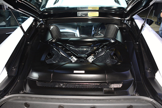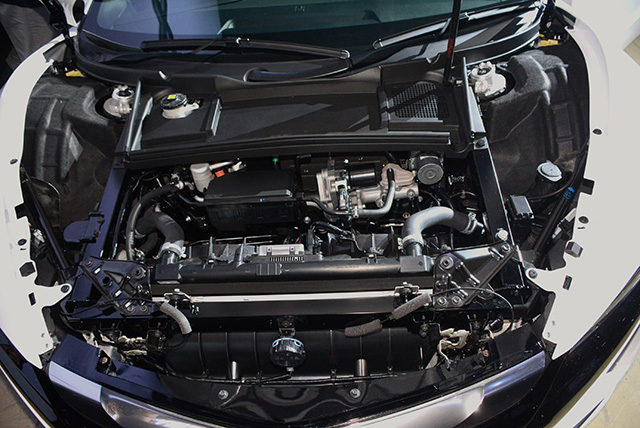 ボンネットの下は空いているかと思いきや、ブレーキや冷却系などで満杯の状態。荷物はリアトランクに。