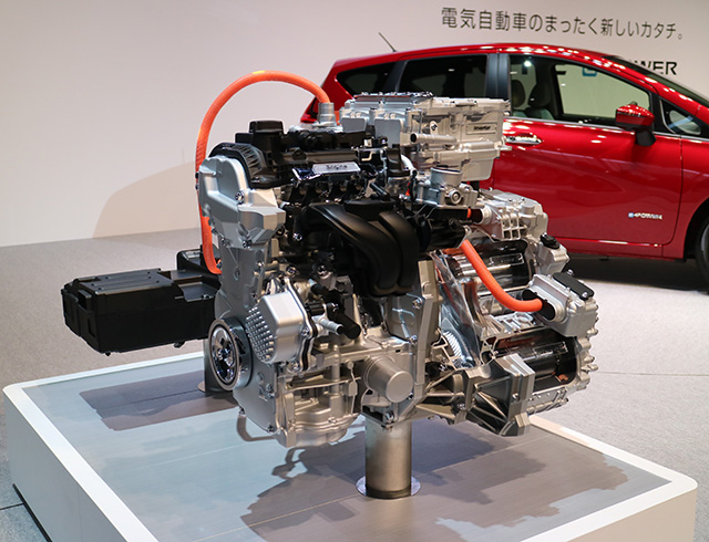 エンジンは走行とは関係ないから、常にいちばん燃費の良い回転数(2000〜2500回転)を充電用に活用できる。だから騒音も少ない。日産が「新しいパワートレイン」と呼ぶ所以である。