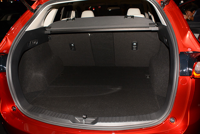 ただ、マツダの意向としてはエンジンよりもデザインに重きを置いているようだ。事実、最近のマツダ車はデザイン面でも大きな進歩を見せている。新CX-5はサイズ的には先代とほとんど変わらないが(全高は−15mm)、全体の印象はより洗練されたと言っていい。薄型ヘッドライトにしたり、Aピラーを35mm後退させたりと、随所に手を入れている。塗色にも深みのあるレッド・クリスタルなどを追加して存在感をよりアピールする。