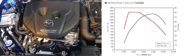 しかし、その最たるものはエンジンだろう。とくに新採用の1.5リッターディーゼルターボ・エンジン(105PS)搭載の6MT・2WDは30.0km/Lという好燃費を手に入れた(AT仕様は26.4km/L)。しかも、ディーゼルの泣きところだった音振に関してはCX-5の2.2リットルディーゼルで実証済み。期待は大きい。
