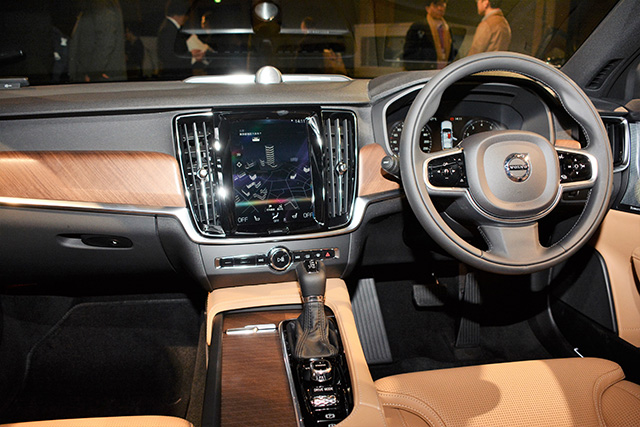 2リッター4気筒エンジンはターボとターボ+スーパーチャージャー、それにモーター付きのハイブリッド。計3タイプ。S90 T5のJC08モード燃費は14.5km/ℓ。