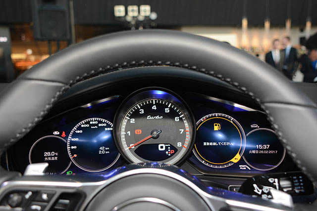 エクステリアもやはりスポーツライクだ。何よりも一目でポルシェだと分かるのがいい。エンブレムなど見なくてもだ。それだけ基本ラインが美しい。フロントのエアインテーク(グリル)の位置はずいぶん低くなった。その斜め上に収まるヘッドライトはLED。LEDというだけでは今更驚きはしないが、片側84コ、両側で168コとなるとちょっと驚く。高速になるとせりあがってくる、リアのスポイラーも最初3分割でフツーの1本になる。ボディはすべてアルミパネルになった。