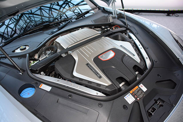 ハイパフォーマンスの心臓たるパワーユニットは4種類。パナメーラと同4シリーズに積まれる3ℓV6ターボ(330ps)、4Sの2.9ℓV6ターボ(440ps)、ターボ・シリーズを武装する4ℓV8ツインターボ(550ps)、さらに2.9ℓV6ツインターボ(330ps)とモーター(136ps)を搭載するハイブリッドである。さらに、ジュネーブショーでは新しいボディのスポーツ・ツーリスモも追加される。