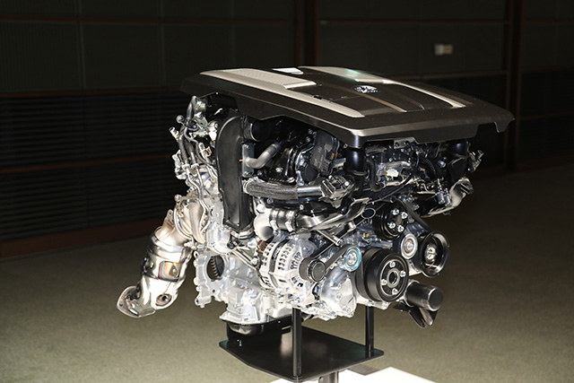LS500のエンジンは新開発の3.5ℓV6で、珍しくツインターボを備える。3.5ℓと言っても排気量はハイブリッドの3456ccに対して3445ccと微妙に異なる。310kW(421馬力)、600Nmの性能。これに10速ATが組み合わされる。現行のV8に比べると約30馬力のアップだ。加速もさぞかし強烈だろう。