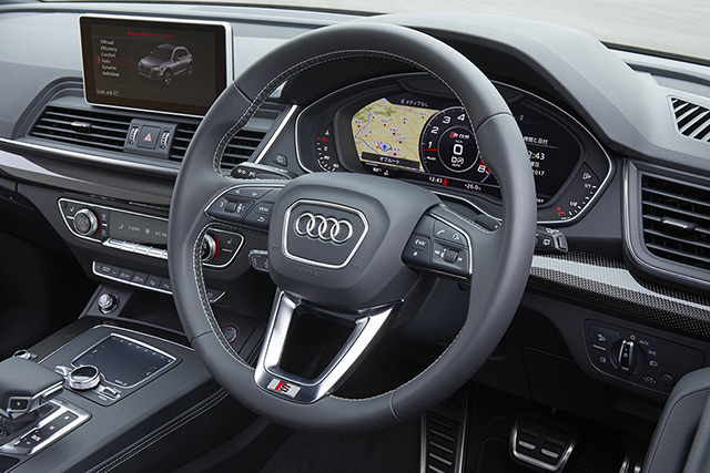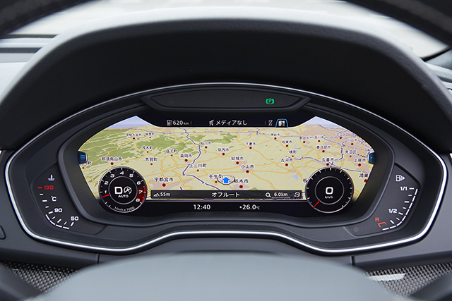 メーターパネルは、オプションでバーチャルコクピットが選べるようになった。12.3インチの大型モニターに、メーター類やDIS(ドライバー・インフォメーション・システム)のほかにナビまで一元化されたシステムである。日本で最初に搭載されたのはTTだったと思うが、その時よりも違和感が少ない。ナビだけでなくメーターの動きもよりクリーン&リアルになった。
