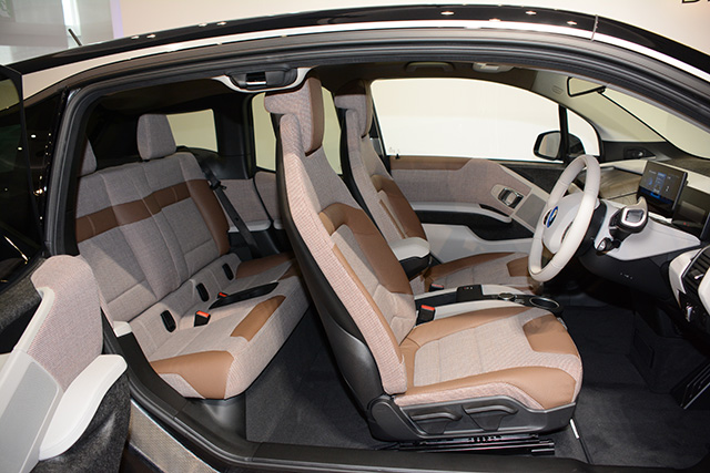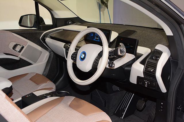 ひと充電での可能走行距離は399mm(2016年のマイチェンで約7割増えた)。ただしこれは最大値と思った方が賢明で、実際には下回ることが多い。そのせいか従来のi3の顧客の約9割はレンジ・エクステンダー付きを選んでいたという。これだと走行距離が約510mmに増えるが、燃料タンク容量は9ℓだから驚くほど長距離になるわけではない。