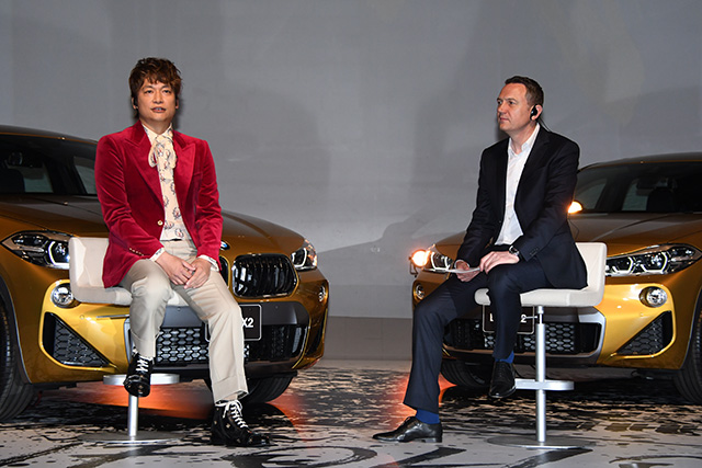 X2のコンセプトは「UNFOLLOW」。この場合は、常識にとらわれないとか反逆者とかいうような意味。発表会場には、BMWのブランド・フレンドに就任した元SMAPの香取慎吾氏も顔を見せた。X2のコンセプト・ムービーを制作する予定だという。