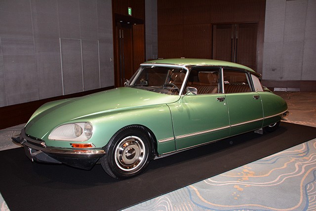 会場に展示されていた1964年製シトロエンDS23パラス。全長4870mm×全幅1800mm。1360kg、4速MT。1955年にパリサロンで初代DSが発表されたときはその日のうちに1万2000台が売れたという。