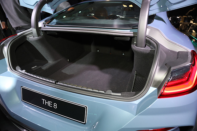 THE 8はフロントグリルのデザインが薄く横に長くなった。先代8シリーズはリトラクタブル。