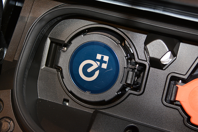 ブルーのe+デザインのキャップが62kWhの証明。急速充電時間は20秒増えて60秒になった。