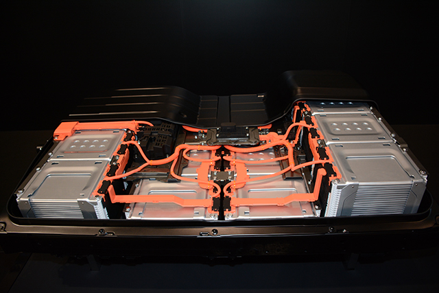 バッテリーパックのサイズや形状をほぼ変えずに高出力化できたのにはもちろんそれなりの工夫がある。8セルを1モジュールとしていた従来の方式を変え、モジュールの枠を取り去り288セル(従来は192セル)を3列並列とした。それにともなって、車高を5mmアップし最低地上娘は15mm短縮した。ここでもスペースを稼いだのである。だから居住スペースは減っていない。ただし、プラットフォームは基本的には初代と同じ。つまり入れ物にバッテリーの形状とサイズを合わせるという方法は変わっていない。