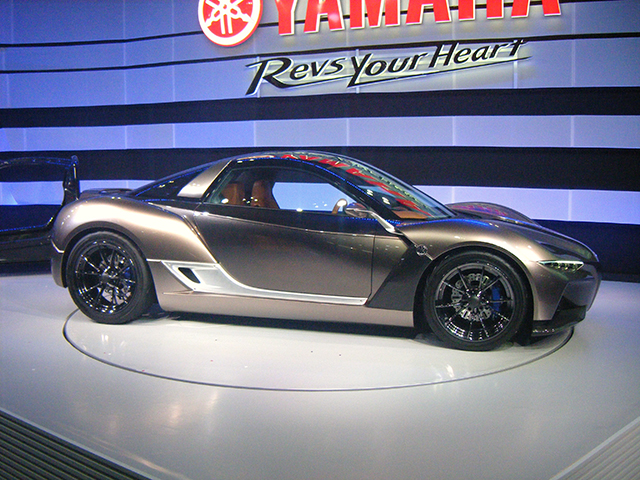 何台もの二輪車の奥のステージに4輪スポーツが見える。ヤマハの創ったデザインコンセプトカーだ。前回の東京モーターショー同様、F1マシンからの思想iStreemコンセプトが反映されている。前回のMOTIVはシティコミューターだったが今回はスポーツ。これらはともに一つのプラットフォームからの発展型。MOTIVは現在市販化に向けて鋭意開発中だと言う。ではこのスポーツも……。