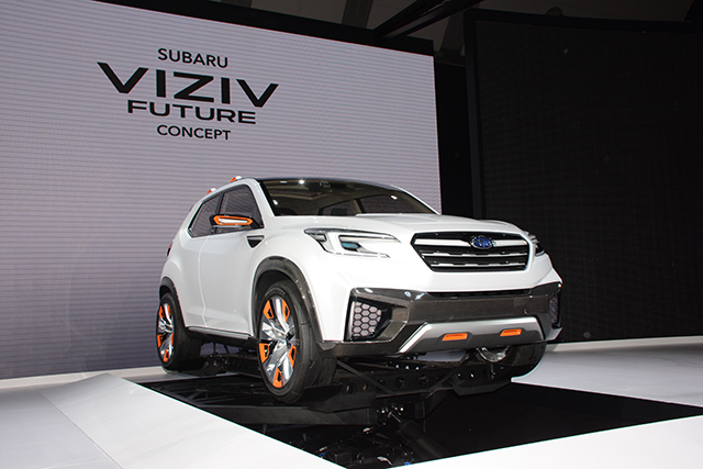 デザインコンセプトは「スバル×アクティブライフ」。いかにも良く走りそうなデザインだ。動力はダウンサイジングターボに新世代ハイブリッドを組み合わせたもの。AWD(4輪駆動)だがリアをモーター起動にしているためプロペラシャフトが不要になった。その分リアの足元がフラットになった。自宅やスーパーなどでの自動駐車システムも搭載する。