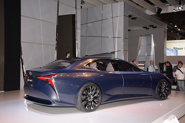 トヨタのプレミアムブランド・レクサスのフラッグシップコンセプトカー。全長5300㎜、全幅2000㎜の堂々たる体格。その割には内外装とも威圧感を与え過ぎないデザインになっている。メカニズム的に新しいのはレクサス初の燃料電池(水素タンクを下部にT字配置して前後荷重配分に配慮)の採用。メイン駆動を後輪とし、前輪にインホイ―ルモーターを配した4WDとしていること。自動運転も最高水準。